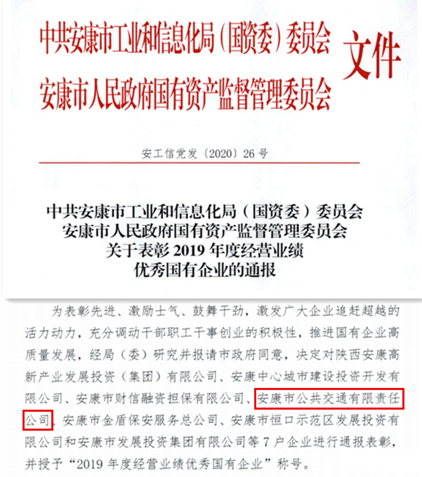 近日,從市國資委傳來喜訊,市公交公司榮獲“2019年度經(jīng)營業(yè)績優(yōu)秀國有企業(yè)”稱號,受到通報表彰。