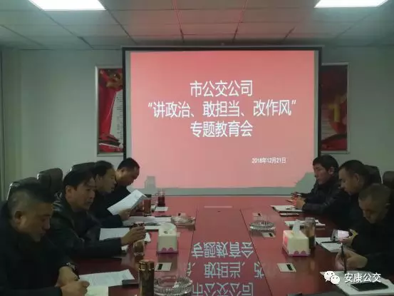 12月24日上午,市公交公司黨委召開“講政治、敢擔當、改作風”專題教育會,黨委書記、董事長張曉強主持會議并講話,公司黨政領(lǐng)導班子成員參加會議,中層以上干部列席會議。會議傳達學習了市國資委《關(guān)于在全市工信(國資)系統(tǒng)領(lǐng)導干部中開展“講政治、敢擔當、改作風”專題教育實施方案》、市紀委《關(guān)于集中開展違規(guī)收送禮金問題專項整治的工作方案》《關(guān)于集中整治形式主義、官僚主義的工作安排》等文件。